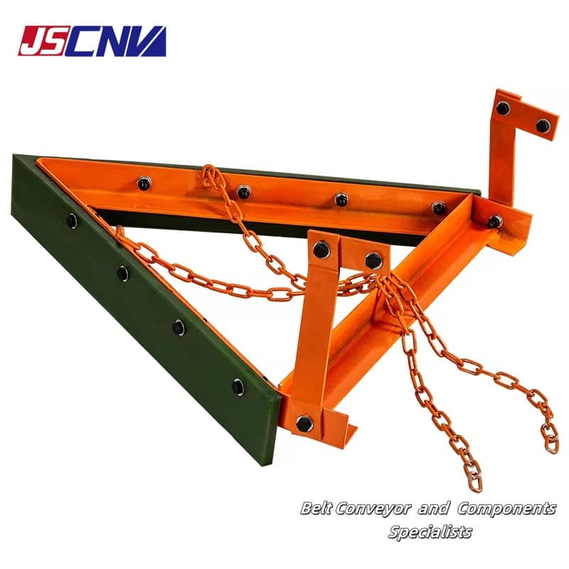 Az V-Plow szíjtisztító a visszatérő szíjtisztító egyik típusa. Főleg a szállítószalag hajlítótárcsája előtt és a nehéz függőleges feszítőszerkezet előtt használják. Jellemzői: sav- és lúgállóság, égésgátló és antisztatikus, magas kopásállósággal rendelkezik, és nem károsítja az övet. A penge nagy szilárdságú poliuretánból készült, a V-alakú kialakítás biztosítja a szíj tisztaságát, az automatikus gravitációs kialakítás pedig az automatikus kompenzációt, ha a penge elhasználódik.